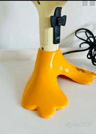 Un fantastico pezzo da collezione vintage in stile Pop Art visto a Cash or Trash!! Design pop molto divertente e raro, perfetto come pezzo d’arredo. L’asciugacapelli 'Crazy Duck' è stato progettato da Niels Christian Jorgenson verso la fine degli anni ‘60. Come base d’appoggio ha zampe di papera, che fungono da supporto stabile. L'interruttore di accensione/spegnimento è un papillon nero. L'asciugacapelli è usato ma funziona ed è come nella foto, con qualche piccolo segno d'uso. Il design è stato appositamente realizzato per l'asciugatura dei capelli dei bambini, ma è diventato ormai un oggetto da collezione. ✅ Funzionante ✅ Plastica in ottime condizioni ✅ Cavo originale ✅ Pronto da usare o esporre. Spedizione disponibile in Italia.