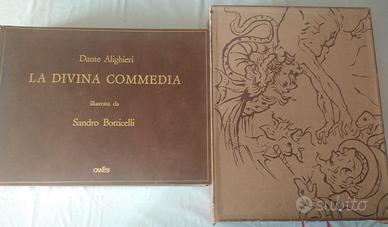 Libro in perfette condizioni. Esemplare nr. 01941, fuori edizione. Divina Commedia illustrata da Sandro Botticelli in occasione del settimo centenario della nascita del Poeta, formato cm 43.5×32.5 . In tiratura limitata di 2000 copie. Testo su 2 o 3 colonne su carta pesante, numerose tavole grafiche e illustrazioni color seppia alcune a piena pagina. Volume con copertina rigida in vera pelle (marrone) protetta da un cofanetto in mezza tela con caratteri in oro. Vi sono 93 tavolette stampate in litografia su speciale carta . Il volume è del 1981 ed è in perfette condizioni. #Dante #libro #divinacommedia #illustrata #botticelli #perfettecondizioni #collezionismo #unico #raccolta