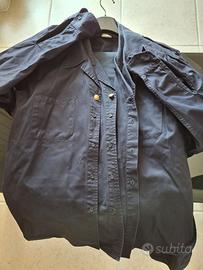 Divisa da lavoro della Marina Militare completa di camicia e pantalone. Colore blue navy e tessuto in puro cotone 100% di ottima qualità e resistenza. Camicia con taschini anteriori e spalline (che si possono scucire). Pantalone con pence, tasche laterali e tasca posteriore a filetto. Il bottoncino dorato con il logo M.M. è indice di garanzia e qualità. Taglia 54, indossabile e comoda per chi è alto circa 180 e pesa circa 85 kg. Come nuova, andrebbe solo stirata. Si può utilizzare sia come capo di abbigliamento sia come tuta da lavoro.