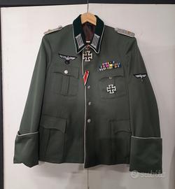 Bellissima riproduzione NO CINESATA acquistata online da azienda specializzata in uniformi in Inghilterra divisa da ufficiale tedesco ww2 giacca e pantaloni tessuto piuttosto pesante foderati entrambi larghezza spalle 47 lunghezza manica 63 completa di tutte le mostrine gradi ecc ecc. pantaloni TL.48-50. stivali originali dell'epoca misura 43/44.il tacco sarebbe un pò da sistemare, bellissimo il cappello TL 57 foderato con stemma in metallo, cinturone fondina pagato tutto circa 850€ . dimostrabili sul sito online . Usata due volte x rievocazione moto storiche come nuova ora per inutilizzo vendo tutto a soli 500 euro rispondo solo al telefono NO WhatsApp in foto io alto mt 1.82 TL. 3289230317oppure lasciate il vostro numero vi contatterò .Prezzo non trattabile se volete spendere meno acquistate da cinesi , questa è una REPLICA identica dell'epoca