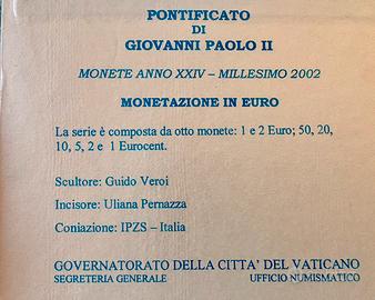 Divisionale euro Stato della Citta del Vaticano anno 2002 prima emissione in euro. in perfetto stato.