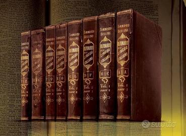 Di Nicolò Tommaseo. Prestigiosa riproduzione anastatica del testo originale di altissima qualità. 4 volumi in 8 tomi di formato cm 25×33. 7.332 pagine complessive. Tiratura limitata e numerata di 1999 copie. Rilegatura artigianale dei volumi con coperte realizzate a mano; scritte con impressioni a caldo in pastello color oro (2006). TIRATURA ESAURITA