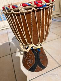 Vendo tamburo Giambo africano fatto a mano in pelle e legno alto 38 cm, largo 24
