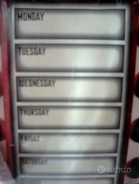 -Lavagna a forma di Dalek rosso,grande circa 42 cm di altezza x 20,5 cm di larghezza nella parte più larga,appendibile con apposito cordino,nuova,in ottime condizioni.La lavagna è in cartone e la parte scrivibile è divisa nei 7 giorni della settimana.