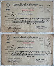 Documenti antichi della Anonima Generale Assicurazioni n.5 quietanze di premio dal 1935al 1938