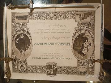 Raccolta di documenti originali italiani (1916–1941), comprendenti certificati scolastici, diplomi religiosi, documenti del PNF, messaggi presidenziale, lettere personali e materiali amministrativi. Tutti i pezzi provengono dallo stesso archivio familiare e conservano timbri, firme e testi autentici dell’epoca.