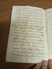 Documento Notarile del 1732 (forse eredità e contemporanea gestione secondo la "regola delle Fusine"in Val Zoldo Bellunese) costituito da 14 pagine rilegate in un libricino di circa cm 18 x 12. Lingua latino e italiano.