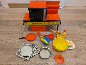 Sei pronto a tornare negli anni80 e a rivivere le “coccole da piccola pasticciera”? Il Dolceforno80 della Harbert (prima edizione 1980) è il vero “microonde” delle bambine di allora: una lampadina da 100W che cuoce davvero biscotti, mini‑crostate e dolcetti in pochi minuti. Cosa trovi nella scatola (tutto originale): 🔥2 teglie anti‑aderenti per dolcetti e crostate 🥣Terrina + paletta per l’impasto 🍰Tanti altri piccoli accessori 📖Libretto ricette originale (con le prime ricette “da chef”) ⚡️Fornello elettrico funzionante al100% (lampadina testata) ⚙️ Stato Usato ma come nuovo: struttura senza graffi, tutti i componenti funzionanti. Scatola originale presente (piccole ammaccature da trasporto, ma intatta). 💰 Prezzo 55€: un affare rispetto al mercato attuale dove gli stessi modelli vengono chiesti da 38€ a 80€ (senza scatola o senza accessori!!) e versioni rare su e Bay hanno raggiunto 3,000€!! 📍 Dove lo trovi Ritiro a mano in zona Roma Sud Spedizione sicura in tutta Italia (costi a carico dell’acquirente, imballo tracciato). 📩 Contatti Scrivi subito per foto extra, video di funzionamento o per concordare il ritiro. Non lasciarti scappare questo pezzo di storia da collezionare e da far rivivere le tue giornate da cuoca dei sogni! 🚚 Consegna InPost locker 🏷️ Tags #GiocattoliVintage #Anni80 #Dolceforno #Harbert #Collezionismo #RetroGioco