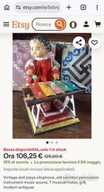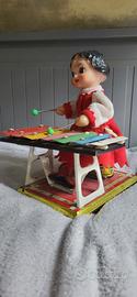 Vintage doll plays xilophone, old carrillon percussior instrument music sound, 7 musical notes, gr8, modern antique