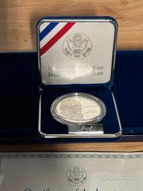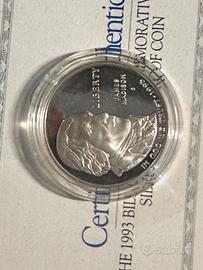 Dollaro d'argento commemorativo degli Stati Uniti del 1993, dedicato a James Madison e alla Carta dei Diritti.