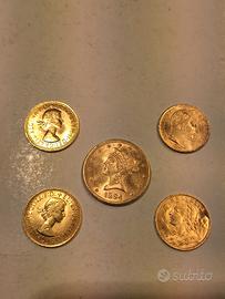 Salve . Vendo 1 moneta da 10 dollari in oro 2 sterline in oro 2 marenghi in oro Prezzo non trattabile e scambio in luogo sicuro con pagamento in contanti.