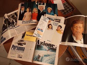 In vendita lotto di 6 riviste settimanali “Domenica del Corriere” Ed.Corsera e 4 riviste settimanali “Epoca” Ed.Mondadori. Si dettaglia. DOMENICA DEL CORRIERE: numeri 36 del 5.9.1965 (Inserto Caravaggio, Inter e Calendari Campionati serie A e B, disegni Walter Molino) – 43 del 24.10.1965 (Santificazione Papa Giovanni XXIII, Inserto Faccetta Nera Amba Alagi, Ospedali psichiatrici, Walter Molino) - 21 del 21.5.1967 (ULTIME IMMAGINI MORTE LORENZO BANDINI, Cassius Clay ed il Vietnam, Storia Aviatori Italiani, Lola Falana, Helenio ed Heriberto Herrera. Numerose e rare pubblicità.) – 35 del 22.8.1967 (Vittorio Valletta, CALCIO: radiografia Cagliari, Torino, Inter, Napoli, Sampdoria. Numerose e rare pubblicità: Disegni Walter Molino) - 44 del 24.10.1967 (Morte Che Guevara, Indro Montanelli: La storia della Rivoluzione Russa. MORTE DI GIGI MERONI. Numerose e rare pubblicità.) – 47 del 14.11.1967 (Rommel/Caporetto, Scheda abbonamento spillata, Jacqueline Kennedy.. Numerose e rare pubblicità: Disegni Walter Molino) . EPOCA: numeri 890 del 15.10.1967 (Nuovo boom italiano, Inserto incontro con Paolo VI, Gianni Morandi/Laura Efrikian, numerose e rare pubblicità) – 917 del 21.4.1968 (Sei secondi a Dallas-J.F.Kennedy, Lucia Bosè, Inserto Walter Bonatti-Mato Grosso, Manifesto: J.F.Kennedy, DONOVAN, Jim Clark, numerose e rare pubblicità) – 919 del 5.5.1968 (Inserto speciale fotografia, GIANNI RIVERA, numerose e rare pubblicità) - 947 del 17.11.1968 (Vittoria di Nixon, Morte Martin Luther King, Inserto Vittorio Veneto, Catherine Spaak, numerose e rare pubblicità). Disegni Walter Molino e Uggeri. Condizioni di conservazione: ottimi senza mancanza alcuna, scritte o strappi invalidanti; segni del tempo perfettamente compatibili. Presenza di tutti gli inserti e depliant pubblicitari. Confrontare corredo fotografico che fa fede ai fini della offerta relativamente agli Albi qui elencati. Spedizione piego di libri raccomandata.