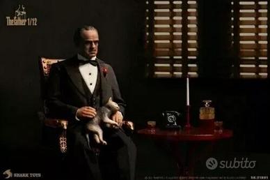 Realizzato in scala 1/12 altezza 15 centimetri, completamente articolabile, vestiti realizzati in tessuto, con accessori intercambiabili, tavolino, due poltrone, 2 gatti, uno da posare in grembo, come nella classica scena del film in cui il Padrino ascolta chi chiede "favori" e lo fa con calma, accarezzando il suo gatto.