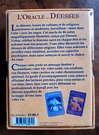 Bellissimo mazzo oracolare composto di 44 carte ed un denso libretto esplicativo di 125 pagine in francese.