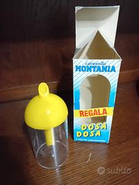 dosazucchero vintage gadget camomilla Montania, veniva dato in omaggio con la camomilla. Non è mai stato usato. Ha ancora la sua confezione originale anche se presenta qualche difetto, graffio e punti in cui il colore è sbiadito