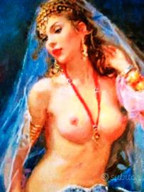 Molto particolare un odalisca seduta con un espressione dolcissima. I colori vivaci rendono il dipinto molto ornamentale.
