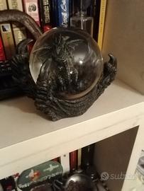 Sfera di vetro con nevischio contenente drago celtico in resina in ottime condizioni. La sfera è saldata su artiglio di drago sempre in resina. Peso 0,900 kg