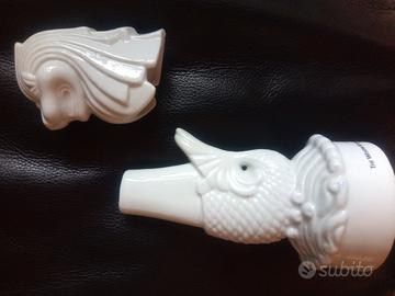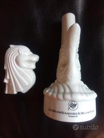 Statuina in ceramica originale di Singapore raffigurante un drago con la testa staccabile che copre un vaso per fiori. Dimensioni 10 cm alla base e 20 di altezza
