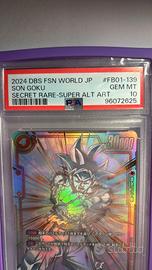 Dragon Ball Super Fusion World – Son Goku FB01-139 Secret Rare (JP) – PSA 10 Vendo carta originale Dragon Ball Super Fusion World (2024) Son Goku FB01-139 – Secret Rare giapponese, certificata PSA 10 (Gem Mint). Carta in condizioni perfette, sigillata in slab PSA originale, ideale per collezionisti e investitori. Versione giapponese molto ricercata, appartenente al set FB01 – Awakened Pulse. PSA 10 garantisce massima qualità, centratura e superfici impeccabili. 🔹 Lingua: Giapponese 🔹 Rarità: Secret Rare 🔹 Grading: PSA 10 (Gem Mint) 🔹 Anno: 2024 🔹 Condizioni: Perfette, mai giocata SOLO CONSEGNA A MANO in zone limitrofe a massa Carrara/Lucca/Pisa/La Spezia Per qualsiasi domanda o foto aggiuntive, contattami.