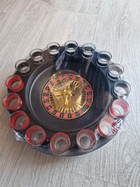 Vendo divertente Drinking Roulette della marca Relaxdays, un classico gioco da tavolo per movimentare feste, compleanni o addii al celibato/nubilato. Il set è intonso, perfetto anche come idea regalo dell'ultimo minuto. Cosa include la confezione: 1 Ruota della roulette girevole (diametro circa 30 cm) 16 Bicchierini da shot in vetro numerati (rossi e neri) 2 Palline in metallo Caratteristiche: - Nuovo, mai usato e ancora nel suo imballaggio originale. - Materiali di qualità: bicchieri in vero vetro e base resistente. - Adatto da 2 a 8 giocatori. Un modo simpatico e originale per stare in compagnia o un regalo simpatico a poco prezzo!