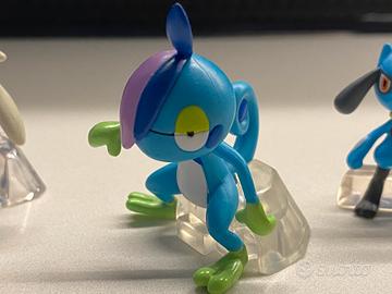 Set di 3 figure Pokémon in miniatura: Drizzile, Riolu e Raboot. Sono in ottime condizioni e perfette per collezionisti o appassionati.