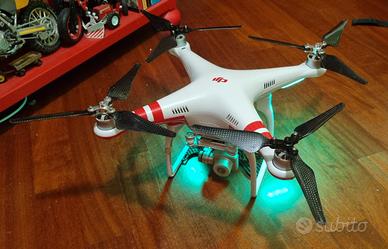 Drone professionale dji Phantom 3 standard completo di caricabatterie, n.2 batterie litio, eliche in fibra di carbonio montate e due serie di ricambio più bulloneria. Borsa zaino
