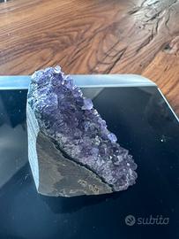 Una drusa di ametista è una formazione naturale in cui diversi cristalli di ametista crescono insieme su una base rocciosa. Questi pezzi presentano solitamente una superficie ricoperta di punti cristallini brillanti nelle tonalità del viola e lilla, sono molto apprezzati sia per la loro bellezza che per le loro proprietà energetiche.