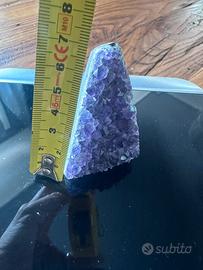 Una drusa di ametista è una formazione naturale in cui diversi cristalli di ametista crescono insieme su una base rocciosa. Questi pezzi presentano solitamente una superficie ricoperta di punti cristallini brillanti nelle tonalità del viola e lilla, sono molto apprezzati sia per la loro bellezza che per le loro proprietà energetiche.