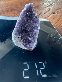 Una drusa di ametista è una formazione naturale in cui diversi cristalli di ametista crescono insieme su una base rocciosa. Questi pezzi presentano solitamente una superficie ricoperta di punti cristallini brillanti nelle tonalità del viola e lilla, sono molto apprezzati sia per la loro bellezza che per le loro proprietà energetiche.