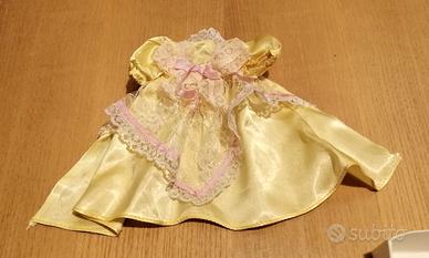 Due abiti, uno rosa ed uno giallo, più vari accessori per bambola Lady Lovely Locks, prodotti negli anni '80. L' abito giallo è stato maggiormente utilizzato ed ha una piccola scucitura in vita (si veda la fotografia), nel complesso tutti gli oggetti sono in ottime condizioni.