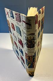 1 - Uno con copertina rigida in tessuto a fantasia (bandiere) cm (31 x 24 x 3). Rilegato, composto da 20 fogli di cartoncino robusto, colore avorio, alternati con fogli di carta velina.
