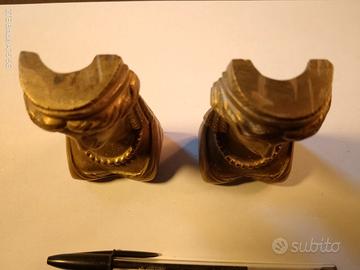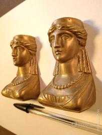 Una preziosa coppia di teste di donna in bellissimo stile “Retour d’Egypte”, originali neoclassiche di inizio 1800. Realizzate con grande maestria in bronzo dorato, hanno provenienza lucchese-toscana e rappresentano un magnifico oggetto da collezionismo, oltre che di utilizzo per arricchire mobili del tempo. Misure: 5 x H.8 cm