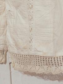 Due camice da camera antiche primi 800 provenienti da un guardaroba di una prozia dell'Italia meridionale. Indumento che racconta le abitudini delle donne dell'epoca, chiamate anche matinée, secondo la moda francese, si indossava la mattina su una gonna semplice o con una sottogonna quando la donna rimaneva in casa la mattina. Con pizzi e ricami a mano. Segni del tempo perché conservate in una cassapanca. Come da foto