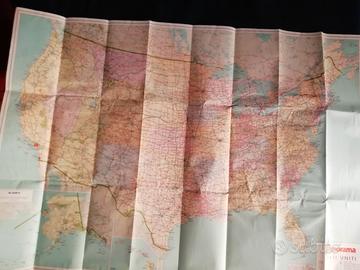 Due carte geografiche degli Stati Uniti, Arnaldo Mondadori Editore, 1984 - Una contiene da un lato la carta stradale degli USA e dall'altro la mappa di Los Angeles; la seconda da un lato la carta stradale di New York e dall'altro la mappa di Manhattan - Dimensioni cm 99 x 69 - Il prezzo è da intendersi complessivo delle due carte