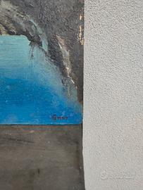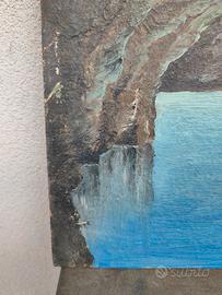 Quadro raffigurante una scena veneziana con barche e campanile da un lato e dall'altro una grotta azzurra