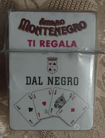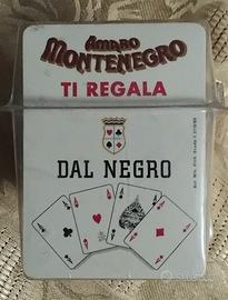 DUE MAZZI CARTE DA GIOCO DAL NEGRO VINTAGE - SIGILLATE SU CONFEZIONE ORIGINALE AMARO MONTENEGRO - BRIDGE POKER RAMINO PLAYING CARD NEW