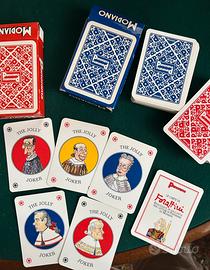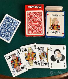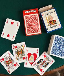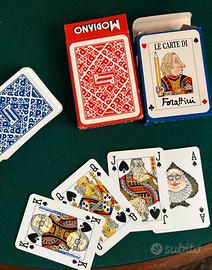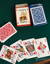 Due mazzi di carte da gioco intitolati "Le Carte di Forattini", uno con dorso rosso e l'altro con dorso blu. Questi mazzi sono un omaggio al vignettista e giornalista italiano Giorgio Forattini distribuito da Panorama prodotto da MODIANO. Come nuovi mai usati, vintage , collezione
