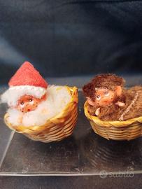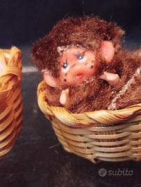 due mini Monchichi nel cesto da collezione. mai giocati . anni 70/80.