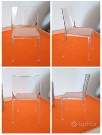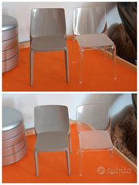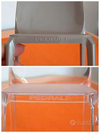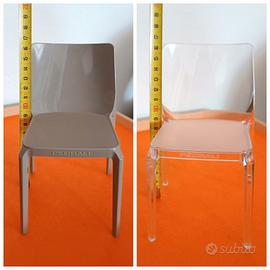 Due articoli da collezione. Miniatura modellino in scala della sedia di design Pedrali modello Blitz linea arredi "The Italian Essence". Repliche della sedia Blitz che è un classico del design contemporaneo in due varianti di colore, una trasparente e l'altra colore tortora. Design e progetto di Claudio Dondoli e Marco Pocci seduta impilabile, adatta sia per uso interno che esterno. Misure e dettagli in foto