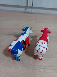 Due mucche vintage,inizio anni 2000 della serie Cow Parade originale,logo w altre informazioni su entrambe le mucche.La mucca con la bandiera del Texas ha una zampa e un corno riattaccate con la colla.Il prezzo è per entrambe.