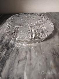 Eleganti posacenere in cristallo lavorato con decorazioni intagliate, ideali per ogni ambiente. Uno dei due posacenere presenta una lieve scalfitura quasi impercettibile nel bordo interno senza però inficiarne la bellezza. Misurano cm 16 x 5,5 h. Tutto come da foto.