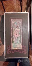 Questi oggetti sono stampe artistiche in stile Art Nouveau incorniciate,basate sulle opere dell'artista Alfons Mucha, noto per le sue raffigurazioni stilizzate di figure femminili.