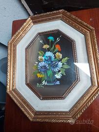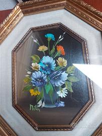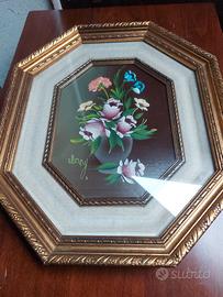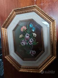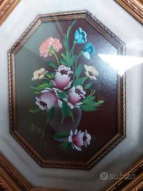 Due Quadri ottagonali vintage mazzo di fiori colorati in un vaso 38 euro cad,uno