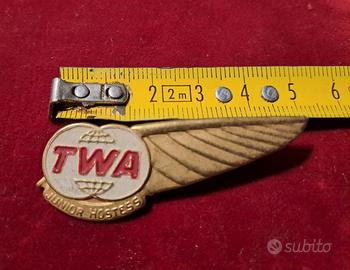 Nr. 2 Spilla vintage degli anni '60 con ala della TWA AIRLINES Junior Hostess.
