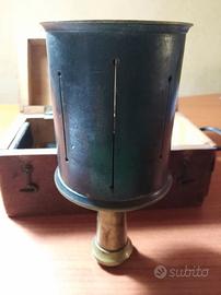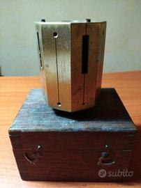 Squadri agrimensori antichi (ottone) e livella a bolla antica. Oggetti utilizzati per lavoro ma in buone condizioni con rispettive scatole in legno con maniglie. Lo squadro cilindrico è alto 15 cm, quello ottagonale 7 cm. Oggetti da collezione per i quali, se interessati, il prezzo è da concordare. Messaggio per contatti