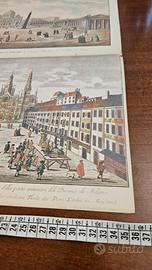 Due stampe antiche raffiguranti la Piazza San Pietro in Vaticano e il Duomo di Milano.