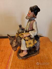 Due statuine in arte sarda: una donna con palineddas e uomo su asinello