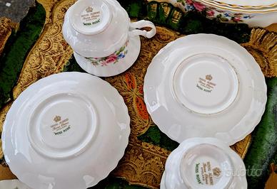 Tazza da tè in porcellana inglese della Royal Albert decoro Moss rose prodotta tra il 1950 e il 1960, come si vede dal marchio.