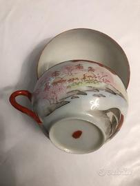 Due tazze da the cinesi con piattini leggermente sbreccati ( come si vede in foto )diametro piattini cm 14 tazze cm 10 vendo 20 €