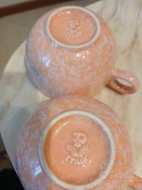 Nr. due tazze te o cappuccio Pagnossin Ironstone Treviso Italy anni 70/80.Ceramica di grande pregio.Finitura spruzzata rosa/pesca, design modernismo italiano.Ottime le condizioni.